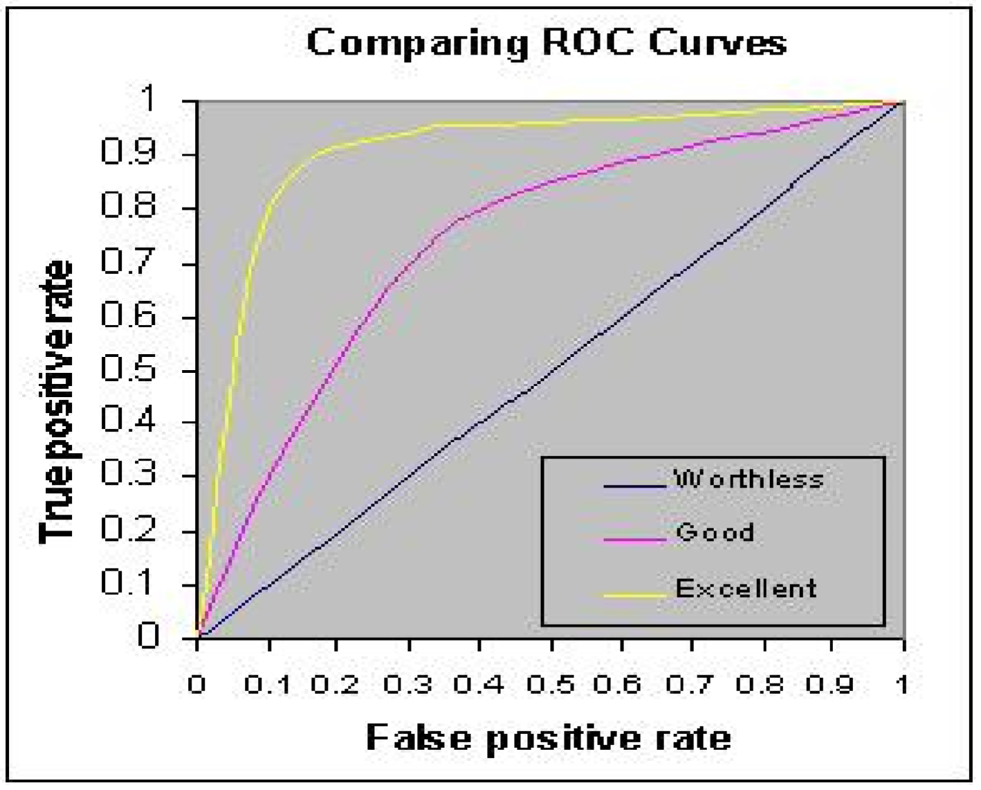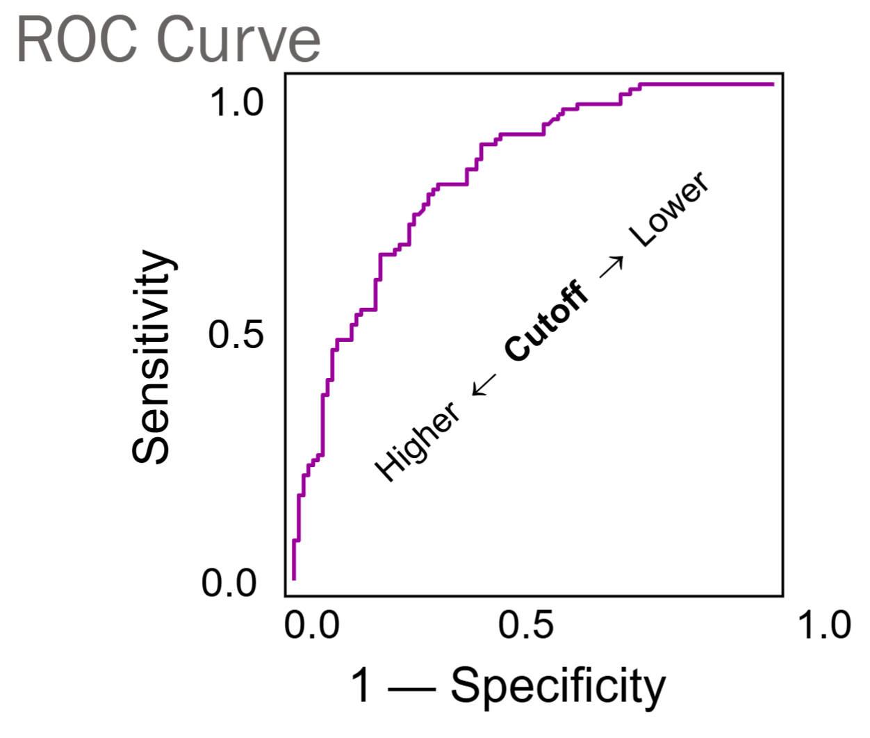 A way to expand on this idea is to get an overall measure of goodness of classification using the receiver operating characteristic (ROC) curve. ROC curve is generated by plotting FPF (1-specificity) against TPF (sensitivity) at different levels of cutoff values.