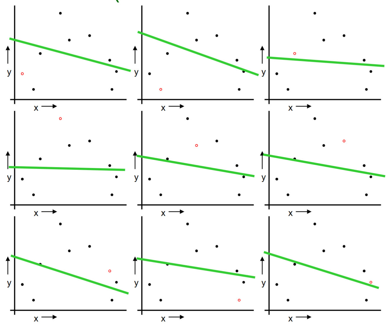 Temporarily remove the i-th observation (x_i, y_i) from the data.