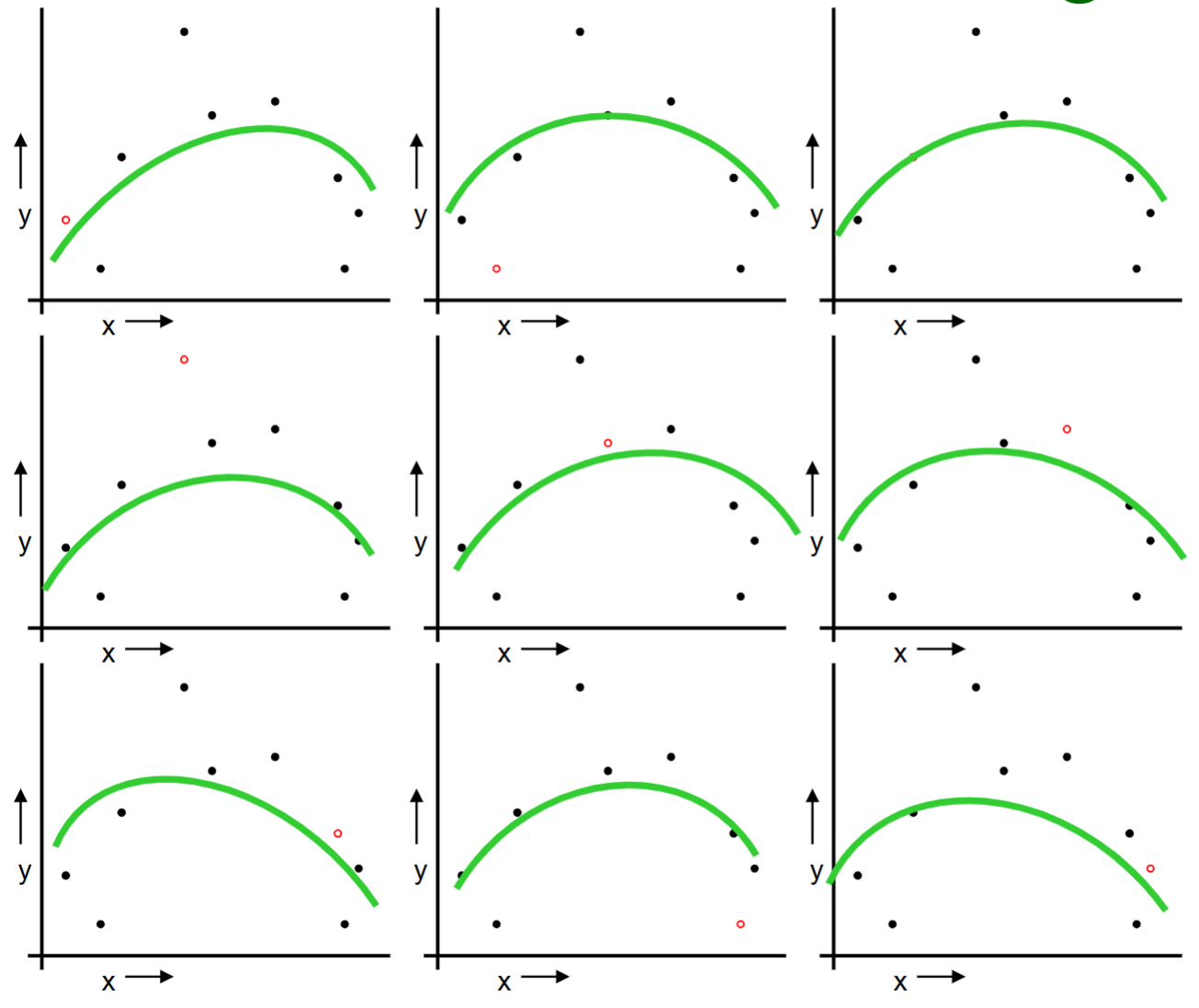 K: the number of folds in cross validation. It is by default n, i.e., the sample size. Typically we use K=2, … ,10.