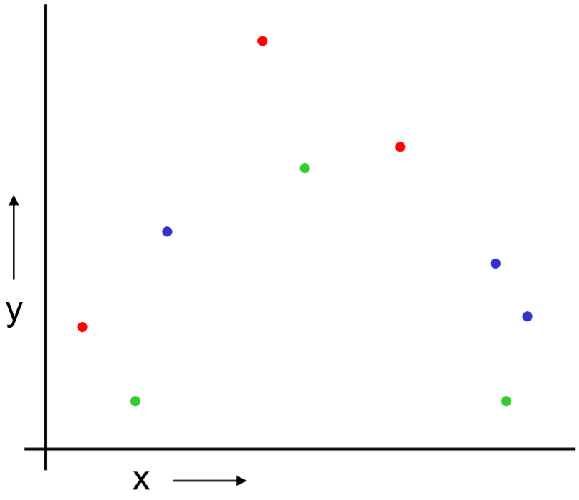 In the following example, we have k=3 partitions colored as red, green and blue.